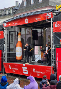 Rosenmontag TRIER 2026 – Der Wettergott meinte es wirklich nicht so gut mit den Karnevalisten und Zugteilnehmer in Trier 😢 Bei teils strömenden Regen und starker Wind trotzten viele dem Wetter und feierten fröhlich im Zug 👍Am Hauptmarkt heizten die super Band „Dompiraten“ und DJ. Sonja